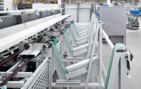 - Разгрузочной и поддерживающей системой для готовых изделий длинной: 4500 мм Сепарация, сборка и система пакетирования может быть интегрирована после разгрузчика